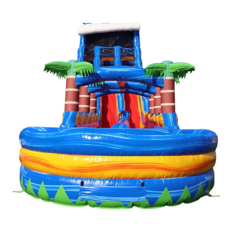 Get ready for massive summer fun with the 27ft Tsunami Plunge Dual Lane Water Slide from Mythical Party Rentals. Standing an incredible 27 feet tall, this giant inflatable water slide rental delivers an adrenaline-pumping ride that will quickly become the highlight of any backyard party or event.